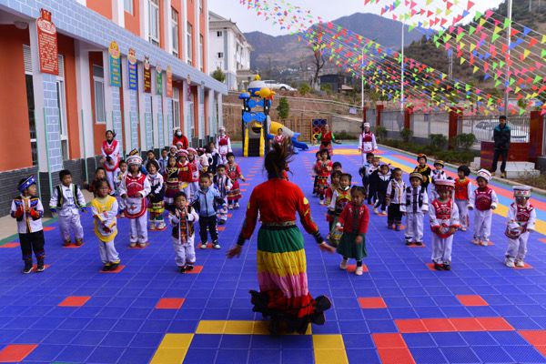 結(jié)合推進(jìn)民族團(tuán)結(jié)進(jìn)步創(chuàng)建“進(jìn)學(xué)?!保⒆愀L蒙鐓^(qū)實(shí)際,對(duì)福堂幼兒園進(jìn)行全面規(guī)劃,裝修布景融入大量中華文化元素,始終堅(jiān)持鑄牢中華民族共同體意識(shí)從娃娃抓起的理念。