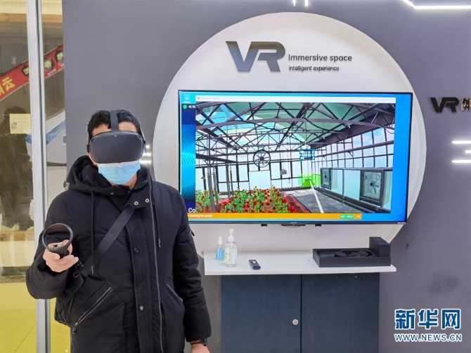 工作人員在演示5G+VR花田 新華社記者 宋晨 攝