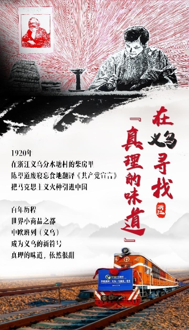 百年前,在義烏閉塞的小山村里,一位滿懷救國理想的年輕人,把馬克思主義的火種引進了中國。而現今,并行于“望道信仰線”行駛的中歐班列(義烏),也讓分水塘這個小山村與全世界的聯系再度變得緊密。