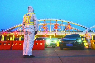 1月6日晚,石家莊市裕華高速口,執(zhí)勤民警在逐一排查進(jìn)入市區(qū)車輛。趙杰攝/光明圖片