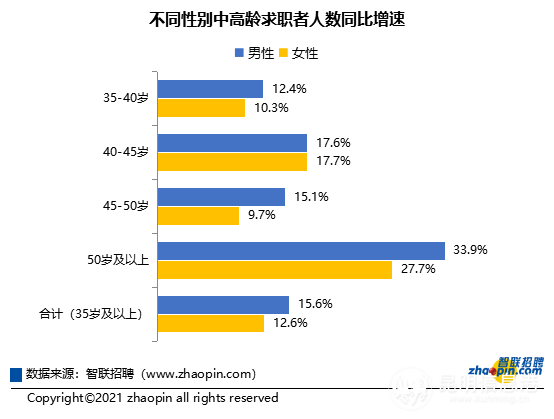 智聯(lián)招聘近日發(fā)布《中高齡求職者就業(yè)問題研究報告》,其中指出,我國就業(yè)市場在新冠肺炎疫情沖擊下保持平穩(wěn),但不同年齡的勞動力群體間出現(xiàn)結(jié)構(gòu)性分化,更多中高齡求職者進(jìn)入再就業(yè)市場,35歲及以上求職者同比增長14.9%,低學(xué)歷中高齡人群面臨的再就業(yè)壓力更大,男性中高齡人群再就業(yè)壓力大于女性。