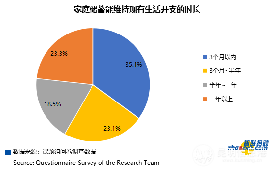 中高齡求職者的支出保持剛性,分別有64.2%、53.1%和41.3%的中高齡受訪者將子女教育支出、日常生活基本支出與償還房貸列為前三大主要負(fù)擔(dān)。此外,醫(yī)療以及房租也是中高齡求職群體的主要支出,分別有22.7%和19.2%的受訪者將其列為前三大主要負(fù)擔(dān)。從年齡結(jié)構(gòu)來看,50歲以下中高齡求職者的支出壓力主要集中于子女教育,46-55歲之間中高齡求職者的醫(yī)療支出壓力明顯高于其他年齡段的人群。問卷調(diào)查顯示,在現(xiàn)有支出水平上,1/3左右中高齡求職者家庭的支出,僅能夠維持3個月以內(nèi)的時間。