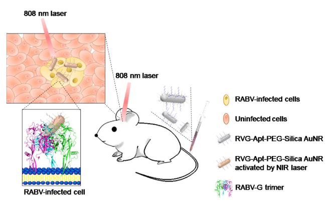 基于納米金棒的光熱療法在小鼠模型上治療狂犬病的示意圖