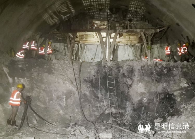 西雙版納隧道位于云南省西雙版納傣族自治州景洪市,全長(zhǎng)10.7公里,最大埋深620米,最小埋深20米,穿越瀾滄江斷裂帶及多條斷層,圍巖破碎、地下水豐富,高風(fēng)險(xiǎn)圍巖段占98%,并集高地應(yīng)力、高地?zé)嵊谝惑w,溜塌、突涌、大變形等不良地質(zhì)災(zāi)害頻發(fā),安全風(fēng)險(xiǎn)高,施工難度,為Ⅰ級(jí)高風(fēng)險(xiǎn)隧道。中國(guó)鐵路昆明局集團(tuán)滇南鐵路建設(shè)指揮部組織中交二航局、中鐵三局等單位共同承建,有力保障了隧道順利貫通。