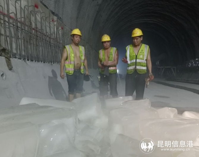 “這里的地層具有高地?zé)崽匦?,隨著隧道不斷開挖,各種機(jī)械、混凝土釋放的熱量不斷涌現(xiàn),高溫、高濕的情況不斷加劇,洞內(nèi)作業(yè)溫度一度高達(dá)40攝氏度,受此影響施工人員體能和機(jī)械作業(yè)效率下降,被大家稱為‘火焰山’”。 中交二航局玉磨鐵路項(xiàng)目部經(jīng)理周君介紹,為降低洞內(nèi)溫度,施工單位除了科學(xué)設(shè)置通風(fēng)與降溫設(shè)備,改善作業(yè)環(huán)境外,每天還運(yùn)送20多噸冰塊進(jìn)洞,定期發(fā)放防暑降溫用品,避免人員中暑,提高機(jī)械工效。