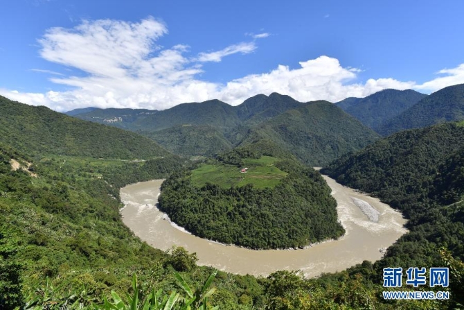 這是西藏林芝市墨脫縣境內(nèi)的雅魯藏布江果果塘大拐彎(2020年8月31日攝)。新華社記者 覺果/攝
