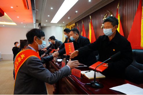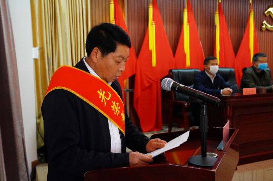 “我志愿加入中國共產(chǎn)黨,擁護黨的綱領(lǐng),遵守黨的章程……”1月25日上午,陽宗海離任和新一屆村(社區(qū))黨組織書記面對黨旗莊嚴(yán)宣誓。
