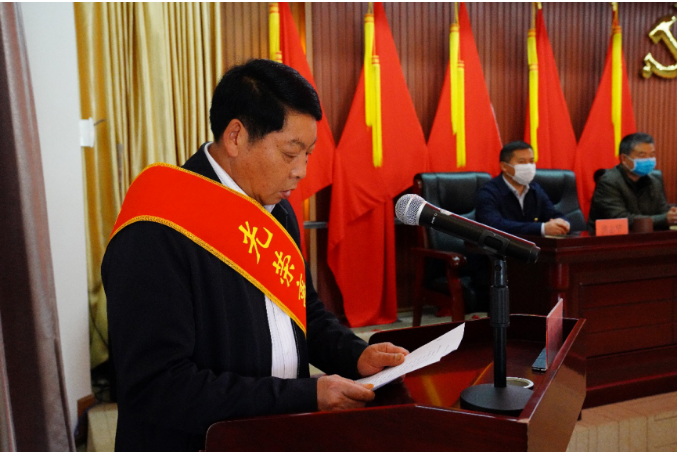 “我志愿加入中國共產黨,擁護黨的綱領,遵守黨的章程……”1月25日上午,陽宗海離任和新一屆村(社區(qū))黨組織書記面對黨旗莊嚴宣誓。