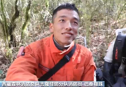 西藏森林消防總隊吉隆駐防分隊消防員 巴桑頓珠:羅薩扎西德勒。