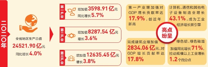 “高質(zhì)量發(fā)展”“動能轉(zhuǎn)換”成為2020年我省經(jīng)濟發(fā)展關(guān)鍵詞。一是高原特色農(nóng)業(yè)發(fā)展加快,農(nóng)業(yè)經(jīng)濟逆勢增長,總量和增速均超過上年同期水平,全年第一產(chǎn)業(yè)增加值增長5.7%,增速較上年同期提高0.2個百分點,對GDP增長貢獻率達17.9%,創(chuàng)下近年新高。農(nóng)產(chǎn)品繼續(xù)成為全省第一大出口產(chǎn)品,成為穩(wěn)增長和發(fā)展農(nóng)業(yè)農(nóng)村經(jīng)濟的重要保障。二是電子產(chǎn)業(yè)發(fā)展加快,助推了高技術(shù)產(chǎn)業(yè)快速增長,2020年,全省計算機、通信和其他電子設(shè)備制造業(yè)增長43.1%,成為我省工業(yè)經(jīng)濟增長的新引擎。三是建筑業(yè)持續(xù)增長,全年完成建筑業(yè)增加值2834.06億元,同比增長6.5%,占GDP的比重為11.6%,對GDP增長的貢獻率達17.8%,是拉動經(jīng)濟增長的主要行業(yè)。