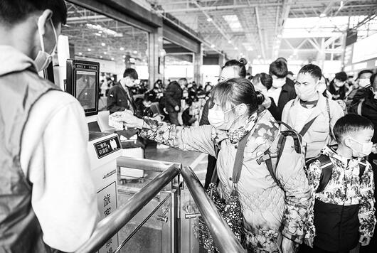 “旅客您好,請先掃健康碼、行程碼再進(jìn)站乘車?!?月28日,2021年春運(yùn)大幕正式拉開,與往年春運(yùn)不同的是,“疫情防控”成為今年春運(yùn)工作的重中之重。春運(yùn)首日,記者來到昆明火車站發(fā)現(xiàn),較往年春運(yùn)首日,今年客流量明顯減少。昆明局集團(tuán)相關(guān)負(fù)責(zé)人表示,受疫情影響和春運(yùn)首日的客流量來看,今年春運(yùn)云南鐵路春節(jié)前的客流可能會較為平緩,預(yù)計(jì)春運(yùn)發(fā)送旅客500萬人次。在當(dāng)前國內(nèi)外疫情防控形勢依然嚴(yán)峻復(fù)雜情況下,鐵路部門如何確保人民群眾健康安全平穩(wěn)有序出行?