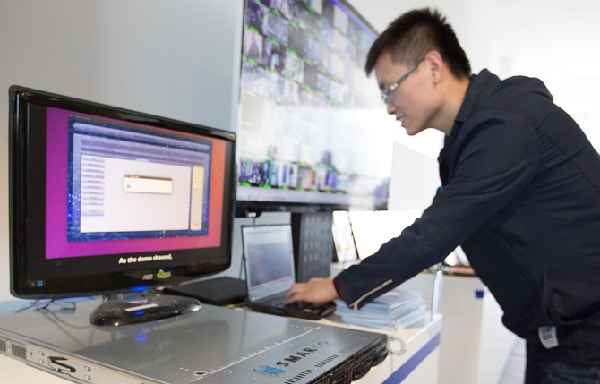 △工作人員在現(xiàn)場(chǎng)演示高通量人工智能一體機(jī)的實(shí)際應(yīng)用。