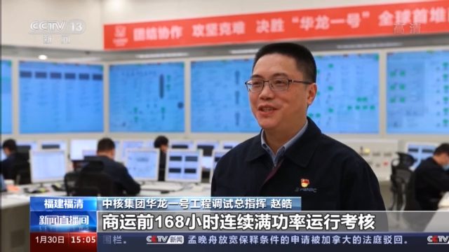 中核集團(tuán)“華龍一號”工程調(diào)試總指揮 趙皓:商運前168小時連續(xù)滿功率運行考核,是新建核電機組移交生產(chǎn)前的最后一項工作,驗證機組按照設(shè)計技術(shù)要求在滿功率工況下安全可靠、連續(xù)運行的能力。