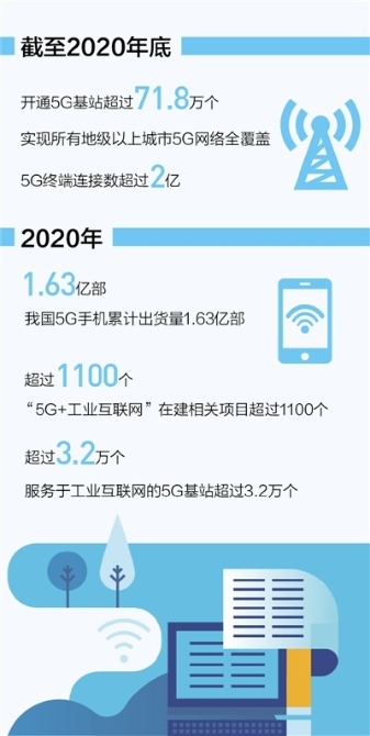 工信部1月26日發(fā)布的最新統(tǒng)計數(shù)據(jù)顯示:我國已建成全球最大5G網(wǎng)絡,截至2020年底,開通5G基站超過71.8萬個,實現(xiàn)所有地級以上城市5G網(wǎng)絡全覆蓋,5G終端連接數(shù)超過2億。