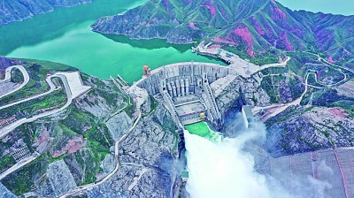 黃河上游李家峽水電站提門泄水(2020年7月9日攝)。新華社發(fā)