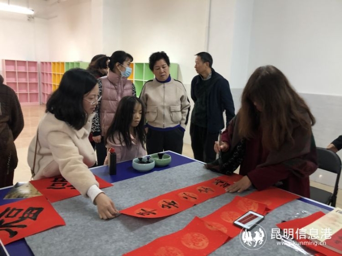 昆明信息港訊 記者昝娟娟 1月31日,昆明市景秀山莊藝術(shù)小區(qū)開園儀式暨迎新春活動舉行。小區(qū)業(yè)主委員會邀請肖凡、蔣麗萍、趙慶平三位知名藝術(shù)家,免費為小區(qū)居民寫春聯(lián)、福字,送上新春祝福。當(dāng)天,小區(qū)引進(jìn)的16名知名藝術(shù)家工作室正式開放。