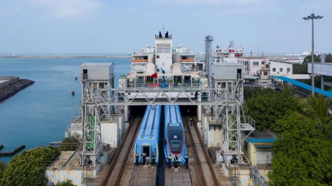 △CR300AF型復(fù)興號動(dòng)車組“上線”海南島 圖片來源:海南廣播電視總臺公眾號