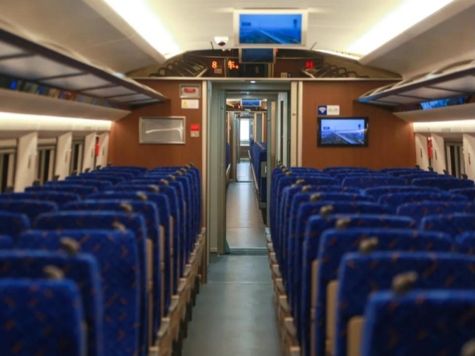 CR300系列列車采用8輛編組,總定員613人,其中一等座48個(gè)席位,二等座565個(gè)席位。相比于“復(fù)一代”的兄弟,CR300系列增加了37個(gè)座位。
