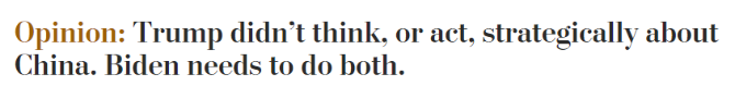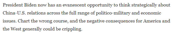 美國《華盛頓郵報》:拜登總統(tǒng)現(xiàn)在有一個轉(zhuǎn)瞬即逝的機會來從戰(zhàn)略上思考中美關(guān)系。兩國關(guān)系涉及政治、軍事和經(jīng)濟等各個領(lǐng)域。如果走錯了路,對美國和西方國家的負(fù)面影響通常會是嚴(yán)重的。
