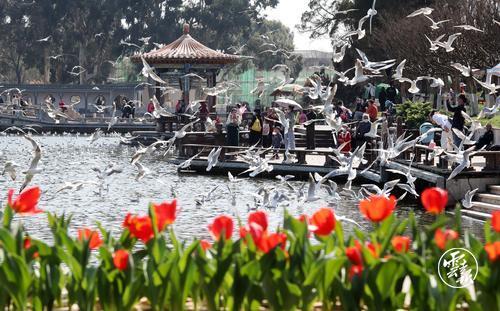 立春日,昆明大觀(guān)公園中各色郁金香在春光中艷麗綻放,春意滿(mǎn)園的景致美不勝收。