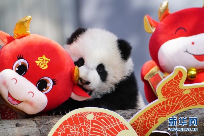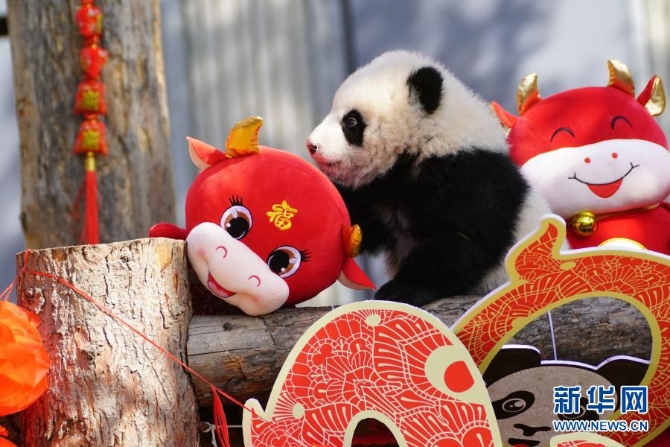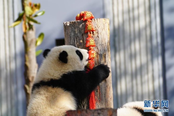 這是2月3日在中國(guó)大熊貓保護(hù)研究中心四川臥龍神樹(shù)坪基地拍攝的大熊貓寶寶。(新華社發(fā))
