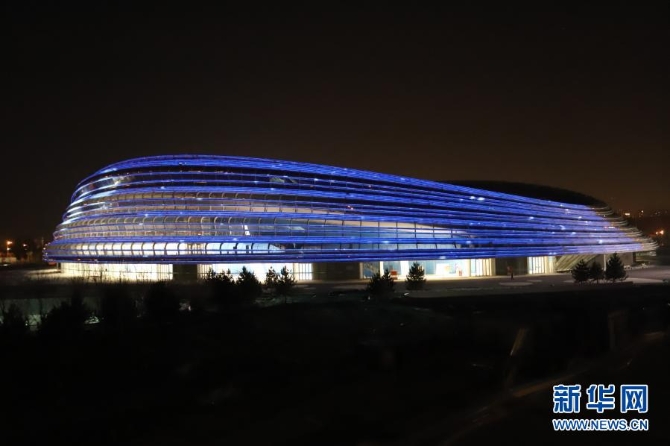 這是2020年12月15日,國家速滑館進行場館外立面泛光照明調試。新華社記者 張驍 攝