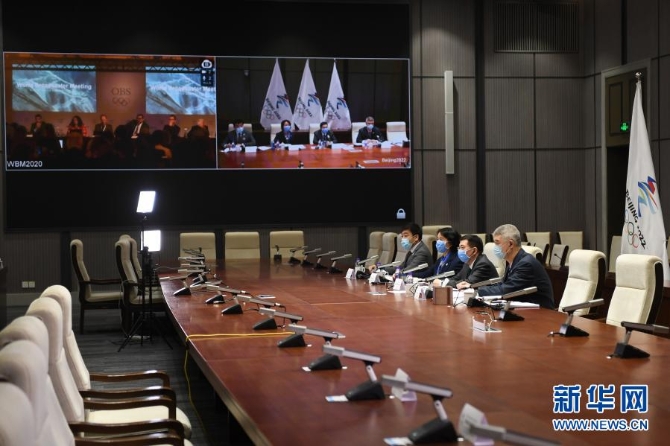 這是2020年2月24日,北京冬奧會和冬殘奧會2020年世界轉播商大會北京分會場通過視頻連線方式參會。新華社記者 鞠煥宗 攝