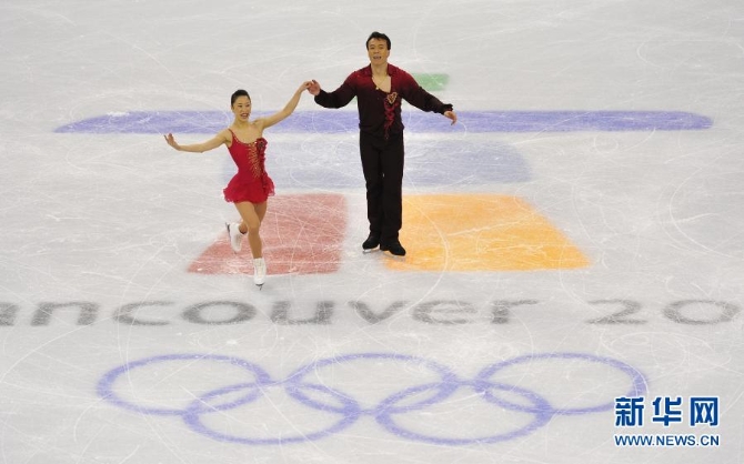 這是2010年2月15日,中國選手申雪(左)/趙宏博在溫哥華冬奧會花樣滑冰雙人滑比賽奪冠后向觀眾致意。新華社記者 武巍 攝