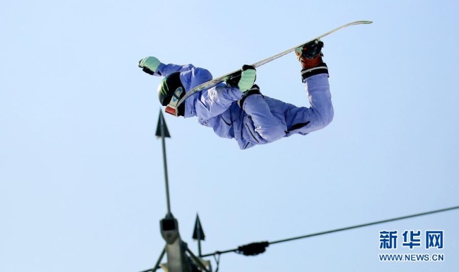 這是2020年12月10日,蘇翊鳴在吉林長白山萬達泰格嶺地形公園進行單板滑雪大跳臺項目訓練。新華社發(fā)(施維 攝)