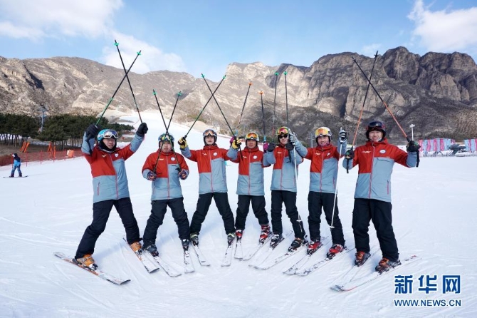這是2017年12月7日,北京延慶區(qū)張山營(yíng)鎮(zhèn)海坨滑雪隊(duì)成員在訓(xùn)練結(jié)束后合影。新華社記者鞠煥宗攝