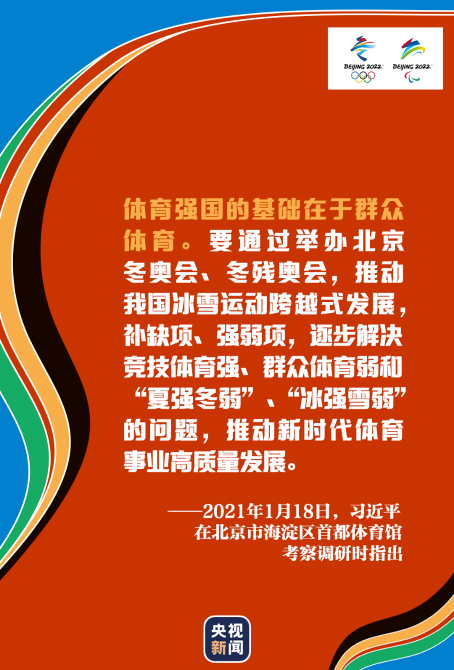 半個(gè)多月前,習(xí)近平總書記冒著嚴(yán)寒先后來到海淀、延慶、張家口等地,深入體育場(chǎng)館、訓(xùn)練基地、交通樞紐等,實(shí)地了解北京2022年冬奧會(huì)、冬殘奧會(huì)籌辦情況。