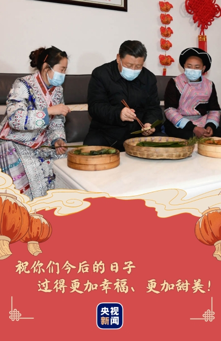包黃粑,迎新年,總書記笑著對(duì)大家說:“祝你們今后的日子過得更加幸福、更加甜美!”