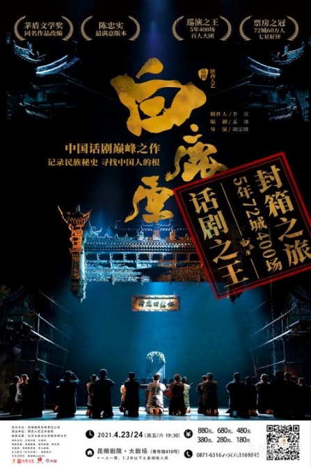 5年72城,400場演出無一差評,觀眾反饋好評如潮。陜西人藝話劇《白鹿原》2021封箱告別之旅·昆明站開票時間為2月8日,昆明劇院將開啟為期一周的“新春早鳥特惠活動”。春暖花開時到劇院,見證中國話劇新巔峰。