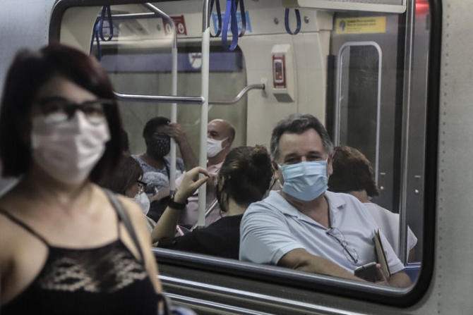 1月28日,市民戴口罩在巴西圣保羅乘坐地鐵。新華社發(fā)(拉赫爾·帕特拉索攝)