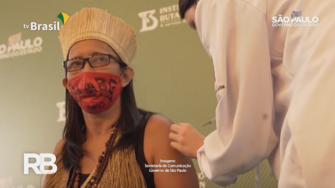 1月17日,巴西原住民中首位新冠疫苗接種者瓦努莎·凱姆貝在圣保羅大學(xué)臨床醫(yī)院接種中國(guó)新冠疫苗克爾來福。(視頻截圖)