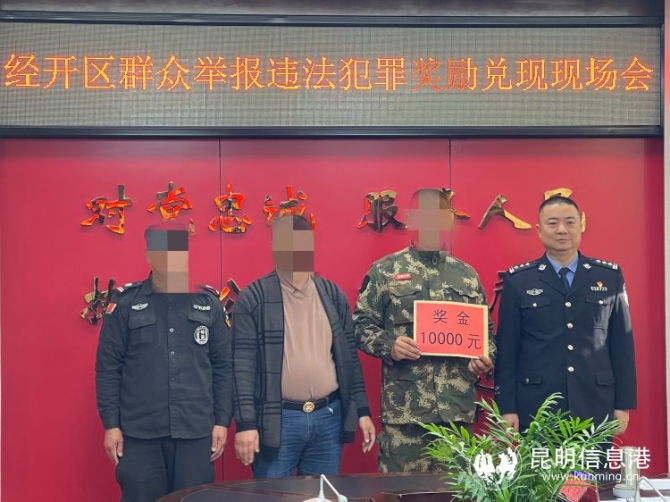 昆明信息港訊 記者龍泉積 2月5日,昆明市公安局國(guó)家經(jīng)濟(jì)技術(shù)開發(fā)區(qū)分局(以下簡(jiǎn)稱經(jīng)開公安分局)舉行群眾舉報(bào)違法犯罪獎(jiǎng)勵(lì)兌現(xiàn)現(xiàn)場(chǎng)會(huì)?,F(xiàn)場(chǎng),經(jīng)開公安分局對(duì)近期主動(dòng)舉報(bào)和提供線索,協(xié)助公安機(jī)關(guān)有效防范和打擊違法犯罪活動(dòng),在維護(hù)經(jīng)開轄區(qū)社會(huì)治安穩(wěn)定中作出突出貢獻(xiàn)的12名個(gè)人給予獎(jiǎng)勵(lì)兌現(xiàn),共發(fā)放獎(jiǎng)金2.76萬(wàn)元。