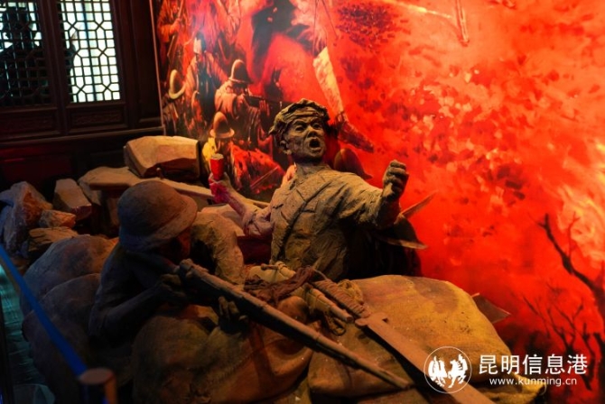 故居講解員李寧介紹,王有德故居是云南省革命理想信念教育現(xiàn)場(chǎng)教學(xué)基地延伸點(diǎn),省級(jí)、州級(jí)愛國(guó)主義教育基地。建于2014年,故居建筑面積為1010.87平方米。展陳項(xiàng)目分為圖文資料展示廳、多功能視頻放映廳和入黨宣誓廳三個(gè)部分。圖文資料展示廳包括前言、求學(xué)之路、參加北京五四反帝愛國(guó)運(yùn)動(dòng)、研究傳播馬克思主義、投身工人運(yùn)動(dòng)、南下進(jìn)黃埔軍校、參加南昌起義、淞滬抗戰(zhàn)為國(guó)捐軀、光照千秋永遠(yuǎn)懷念等9個(gè)板塊,共有展板63塊、圖片資料155幅、歷史文獻(xiàn)書籍50余本、情景雕塑2座。