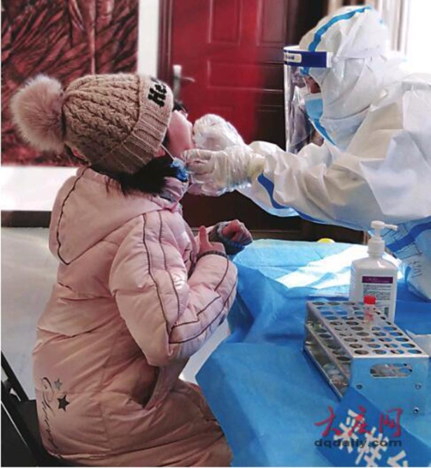 1月29日,黑龍江省大慶市全民核酸檢測的第二天,在高新區(qū)黎明街道新華社區(qū)核酸檢測現(xiàn)場,護士朱國萍被這暖暖的祝福感動了。記者在現(xiàn)場采訪時,目睹了這感人的一幕。