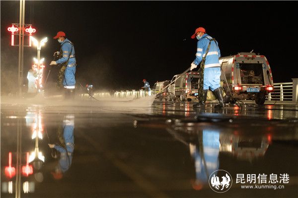 那么,如此頑固的鷗糞要如何處理呢?海埂大壩一塵不染的秘密,便藏在了每個(gè)人群散去的夜晚。每當(dāng)夜幕降臨,游客漸漸散去,云南京環(huán)海潔公司的環(huán)衛(wèi)工人們登場(chǎng)了。5臺(tái)步道車(chē)順次排開(kāi),其中一輛首先將需要沖洗的路面進(jìn)行濕化,浸潤(rùn)已經(jīng)被風(fēng)干的鷗糞,隨即環(huán)衛(wèi)工人們手拿高壓水槍,對(duì)準(zhǔn)鷗糞,各個(gè)擊破,經(jīng)軟化的鷗糞在高壓的作用下,不再頑固,漸漸融在了水中?!皼_洗鷗糞難度不大,卻是個(gè)技術(shù)活,如何用巧勁而不是蠻力,如何找到最佳噴水角度,讓作業(yè)更高效,都是有講究的?!痹颇暇┉h(huán)海潔公司王志洪說(shuō)道。