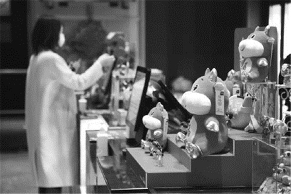 售票大廳內(nèi)充滿春節(jié)檔的氛圍,最顯著的莫過于右側(cè)柜臺上擺放著的《唐人街探案3》“盲盒”禮盒,這是萬達影城專門為春節(jié)檔推出的,此外,還有“櫻桃小丸子”禮盒等,火紅的包裝讓人充分感受到春節(jié)檔的氣息。