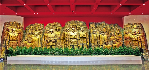 中國人民抗日戰(zhàn)爭紀(jì)念館入口的大型雕塑《銅墻鐵壁》。吳娟/攝