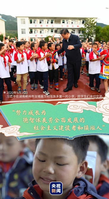 2020年9月16日,習(xí)近平總書記來到湖南汝城縣文明瑤族鄉(xiāng)第一片小學(xué),走進四年級教室,同老師和同學(xué)們親切交流。