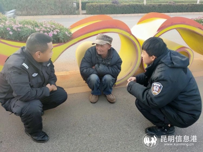 2月3日,昆明市公安局呈貢分局龍街派出所一名輔警在上班路上,發(fā)現(xiàn)斗南小學到斗南村方向馬路中間的花壇下面蜷縮著一個人,車來車往,十分危險。輔警見狀及時將老人拉到路邊安全的地方,并通知所上巡邏車前來處理。