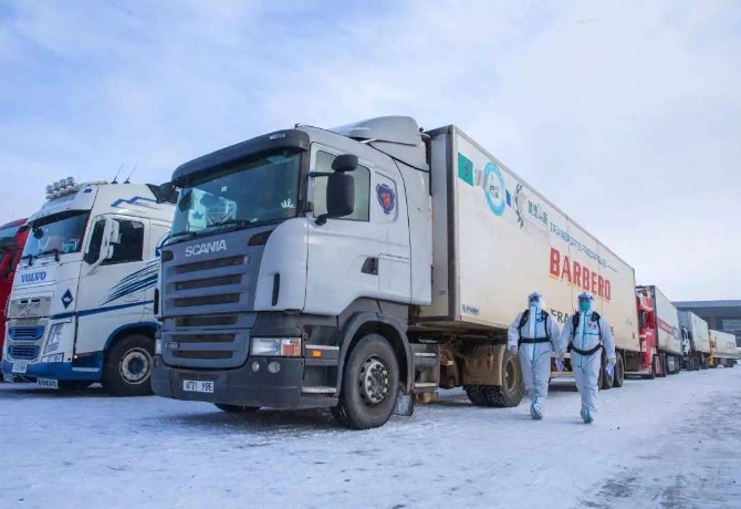 ▲ 2月7日,內(nèi)蒙古二連出入境邊防檢查站民警冒雪查驗(yàn)果蔬車輛。近日,二連浩特口岸迎來果蔬出口高峰,內(nèi)蒙古出入境邊防檢查總站二連出入境邊防檢查站開通“農(nóng)副產(chǎn)品綠色通道”。(郭鵬杰/攝)