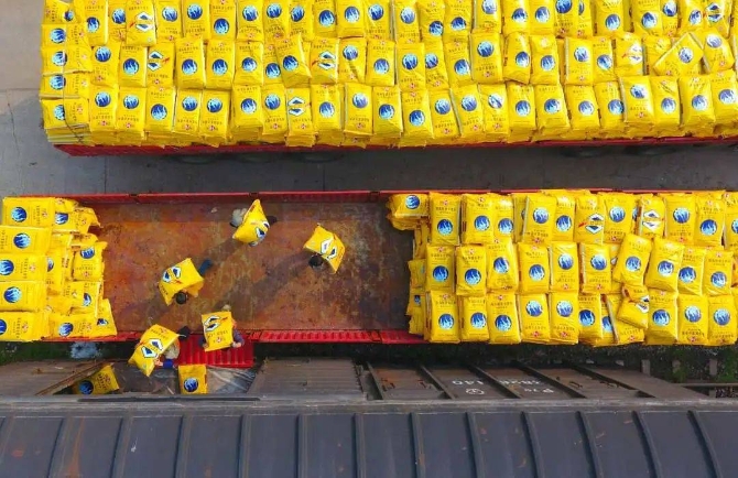 ▲ 2月4日,湖北省宜昌市興發(fā)集團(tuán)新材料產(chǎn)業(yè)園,工人們將有機(jī)硅新材料產(chǎn)品裝貨。臨近春節(jié),園區(qū)員工放棄休假,加班加點(diǎn)組織生產(chǎn)趕訂單,奮力沖刺新春“開門紅”。2020年,興發(fā)集團(tuán)推進(jìn)化工轉(zhuǎn)型升級,全年凈利潤同比增長100%以上。(李文洪/攝)