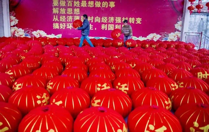 ▲ 2月3日,浙江省臺州市仙居縣橫溪鎮(zhèn)金子山村,村民正趕制燈籠,滿足客戶的訂單需求。近年來,仙居縣橫溪鎮(zhèn)依托燈籠制作傳統(tǒng)手工技藝,加工大紅燈籠。產(chǎn)品銷往全國多個省市,同時帶動村民在家門口就業(yè)增收。(陳月明/攝)