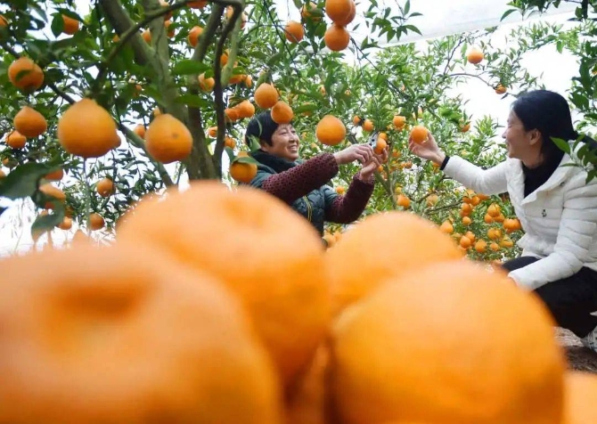 ▲ 2月3日,四川省內(nèi)江市東興區(qū)雙才鎮(zhèn)玉皇觀村,村民正在采收柑橘。該村柑橘陸續(xù)成熟,吸引了眾多市民上門采購。(唐明潤/攝)