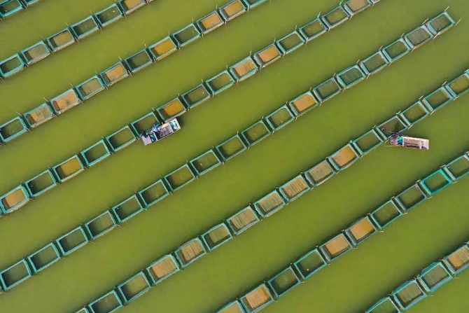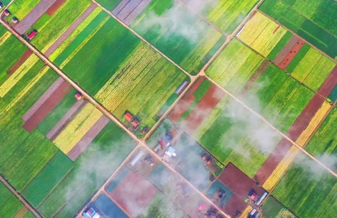 ▲ 2月3日,俯瞰湖南省漢壽縣辰陽街道綠油油的蔬菜基地。當(dāng)日立春,萬物復(fù)蘇,蔬菜基地里處處是村民忙碌的身影。漢壽縣是傳統(tǒng)蔬菜生產(chǎn)大縣,蔬菜主要供應(yīng)粵港澳大灣區(qū)和出口日本、新加坡等國家。(郭立亮/攝)