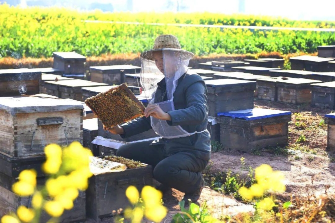 ▲ 2月3日,云南省大理州巍山縣廟街鎮(zhèn)添澤村油菜花田間,養(yǎng)蜂人在查看幼蜂繁殖情況。巍山縣擁有豐富的花粉資源,吸引了眾多養(yǎng)蜂人。(張樹祿/攝)