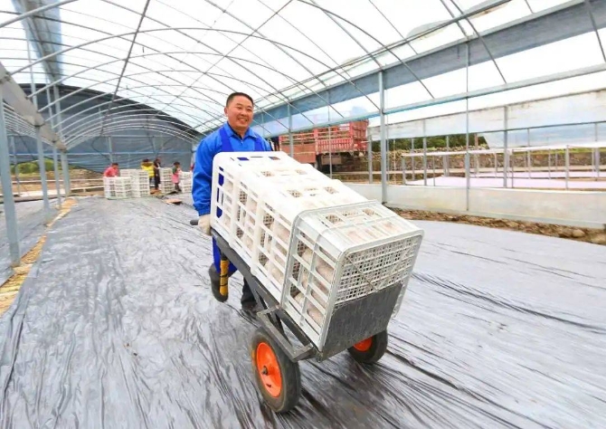 ▲ 2月3日,貴州省銅仁市印江土家族苗族自治縣朗溪鎮(zhèn)河西村智慧農(nóng)場,工人搶抓時令忙勞作,為產(chǎn)業(yè)豐收打好基礎(chǔ)。(左禹華/攝)
